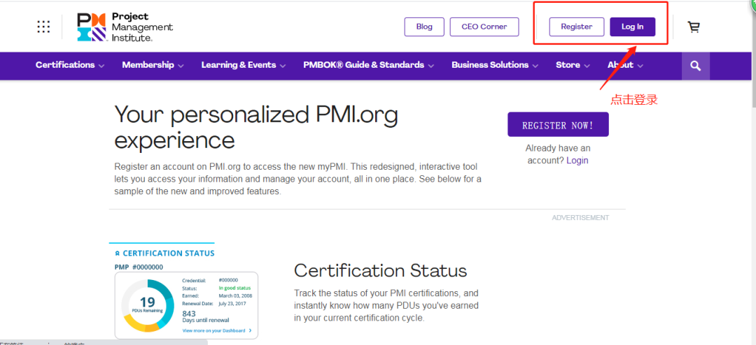 1、登陆PMI官网 my.pmi.org ,点击登录